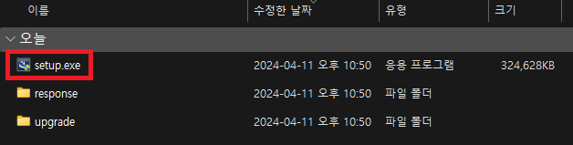 설치파일 다운로드 후 압축을 풀어 setup.exe 파일을 실행합니다.