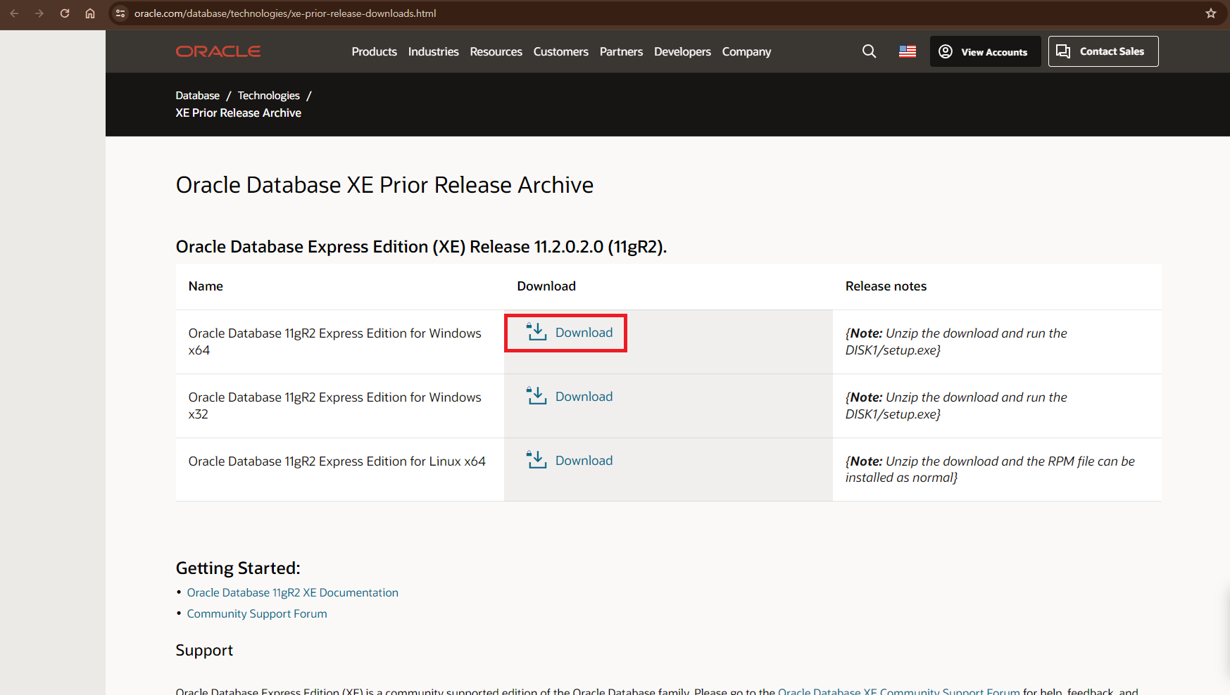 https://www.oracle.com/database/technologies/xe-prior-release-downloads.html